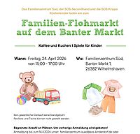 Das Familienzentrum Süd, der SOS-Secondhand und die SOS Krippe Küstenkinder laden herzlich ein zum Familienflohmarkt auf dem Banter Markt!