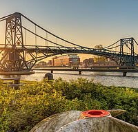 Mit einer Spannweite von 159 Metern und 440 Tonnen Stahl darf sie sich als Deutschlands größte Drehbrücke betiteln. Heute läuft das Öffnen und Schließen der Brücke selbstverständlich auf Knopfdruck - als sie noch manuell bedient wurde, waren sechs Mann nötig, um die Brücke zu bewegen.