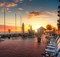 Ein Strandkorb ist das perfekte Domizil für einen Tag am Meer. Mit herrlichem Blick auf den Jadebusen ist der Weg ins Wasser nicht weit. Oder Sie strecken die Beine auf der grünen Liegewiese aus, lauschen dem Rauschen der Wellen und genießen die Meeresbrise.