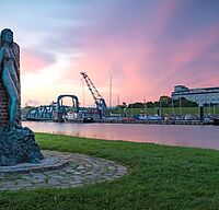 Was für ein Anblick, wenn die imposante Drehbrücke sich bedächtig für große Schiffe öffnet und den Weg in den Großen Hafen freigibt - ein tolles Bild, nicht nur für Fotografen!